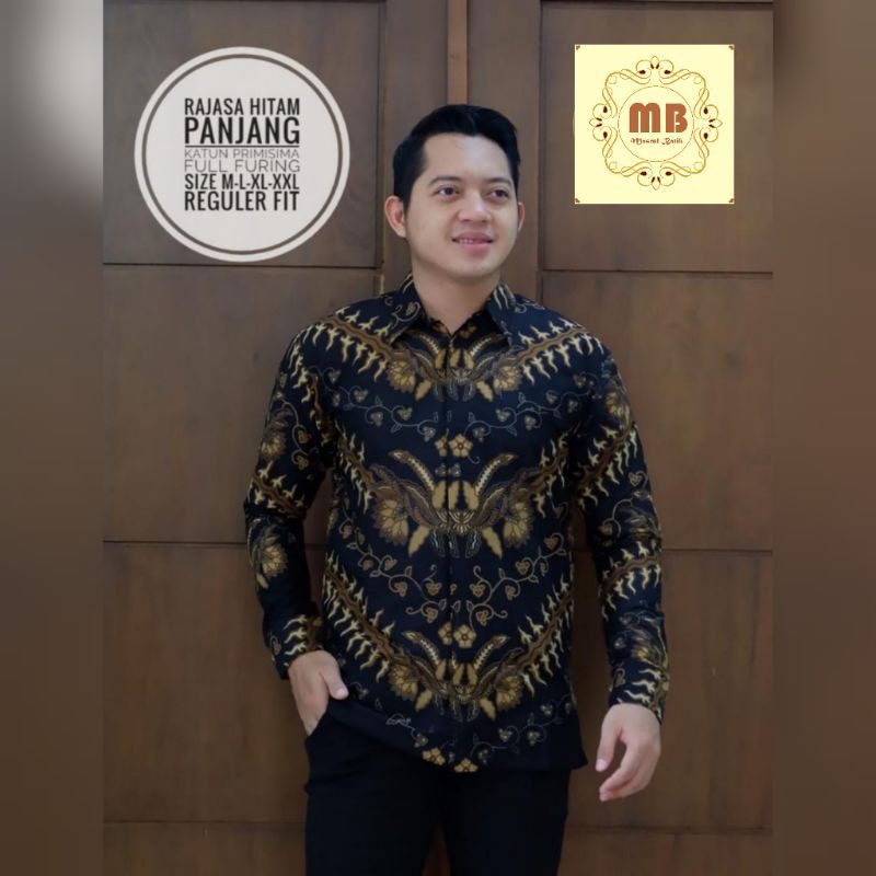 Batik pria lengan panjang asli solo furing katun rajasa hitam