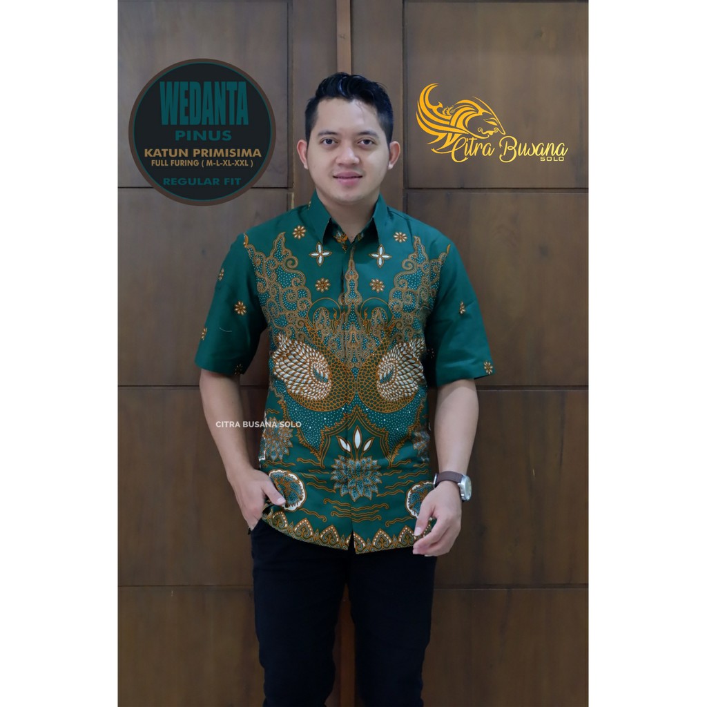Name: Wedanta Pinus Pendek Kemeja Batik Pria Full Furing Bahan Katun Halus Primisima
