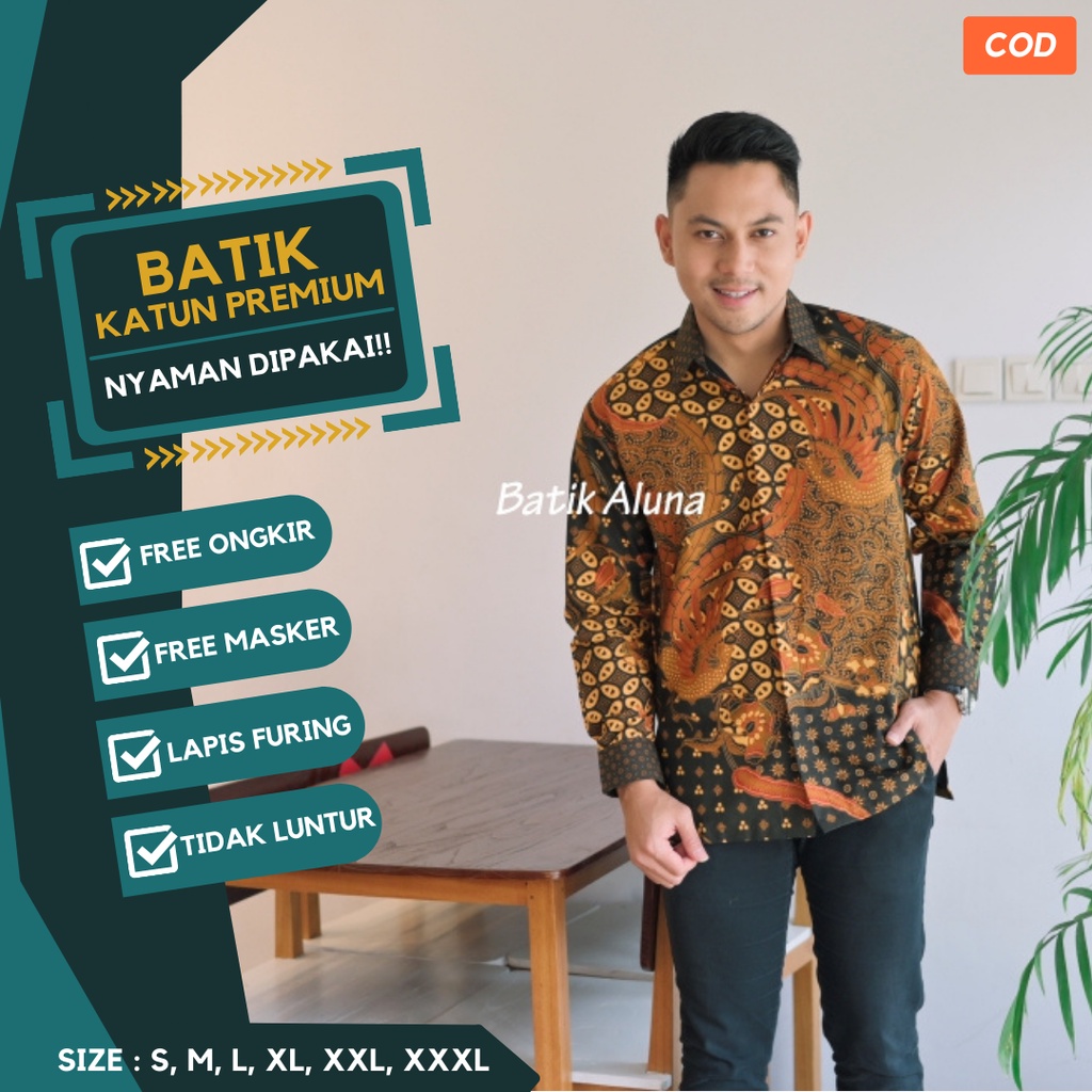 Produsen Pakaian di Kabupaten Aceh Tamiang Batik Pria Premium Lengan Panjang Full Furing Slimfit Batik Pria Solo Katun Premium Pcw 092 dari Aluna Batik Group Kab. Sragen