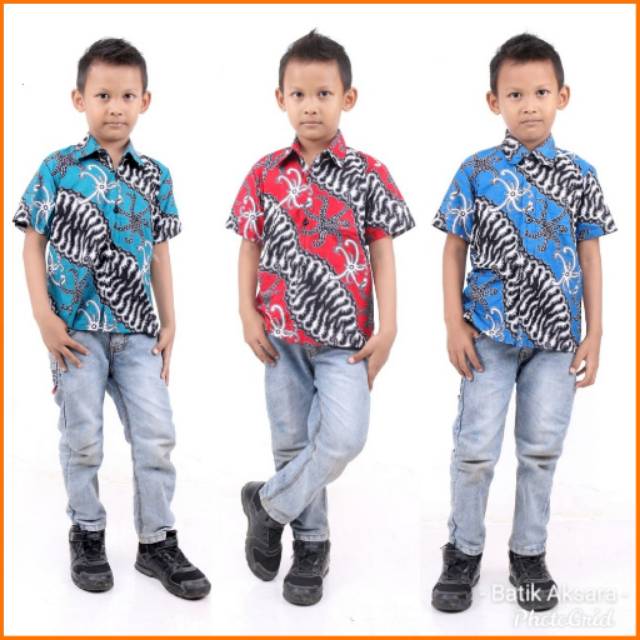Name: Kemeja Batik Anak Modern Lengan Pendek, Hem Batik Anak Murah Ori Shabirah Batik Solo Modis Trend New